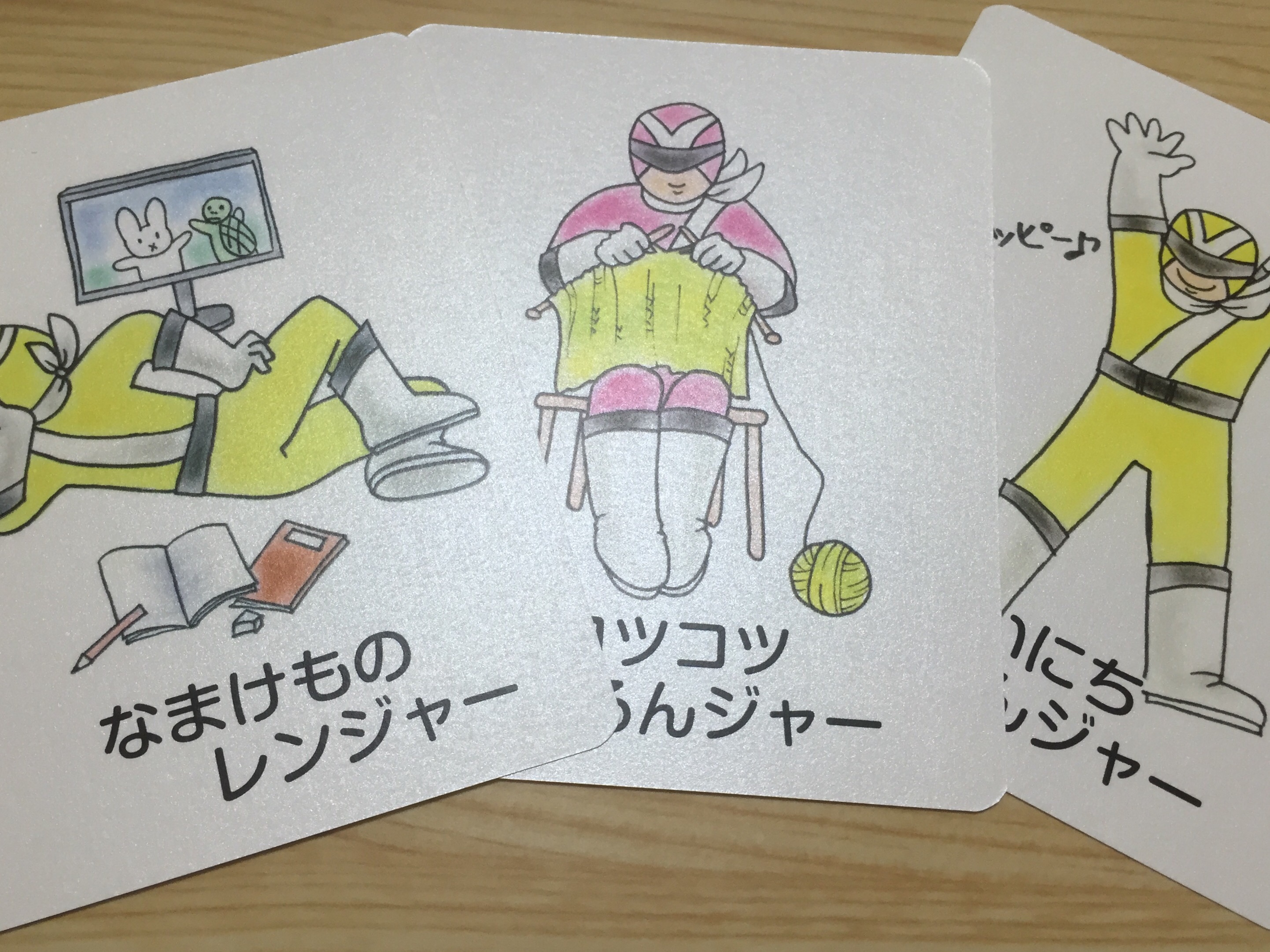 「なまけものレンジャー」「コツコツやれるんジャー」「まいにちたのしんジャー」